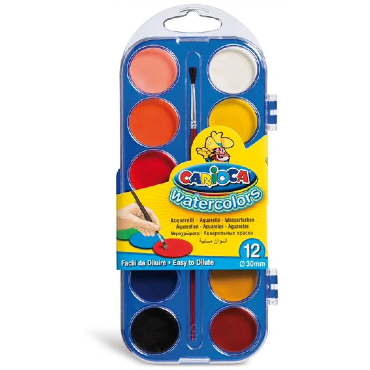 Carioca Watercolors. Larghezza scatola principale: 41 cm, Lunghezza del cartone principale: 47,5 cm, Altezza scatola principale: 23,5 cm WatercolorsnColori in pastiglia brillanti e facilmente miscelabili tra loro, consentono di ottenere infinite sfumature.
