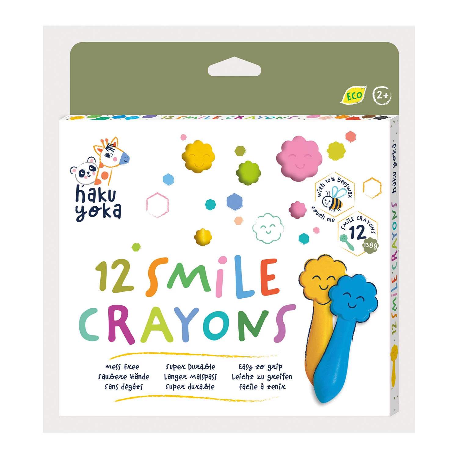scatola di 12 pastelli a cera a presa facilitata, con elemento terminale a forma di “smile” che facilita la presa. I pastelli a cera risultano ergonomici e favoriscono una miglior presa. Sono durevoli e resistenti, in colori brillanti. Non adatti al di sotto dei tre anni, potrebbero staccarsi piccole parti.