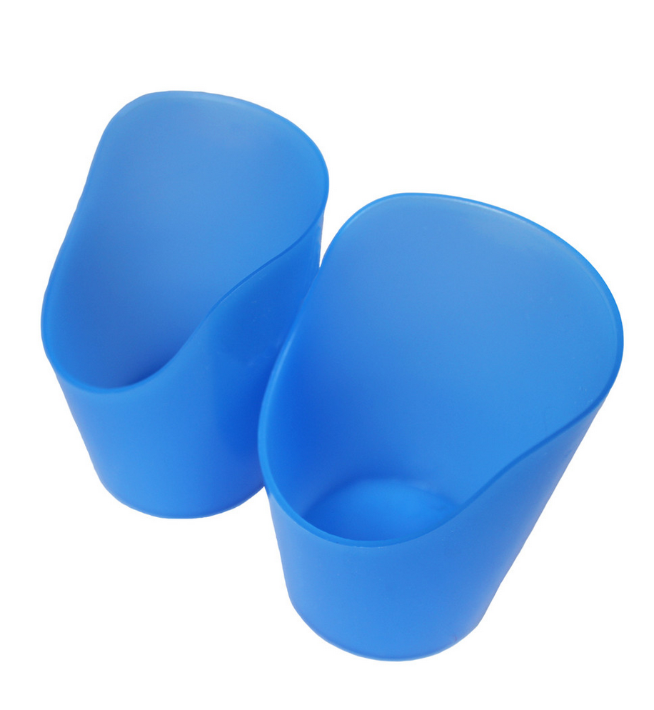 2 bicchieri sagomati “Flexi cups” per facilitare il gesto senza che il bordo del bicchiere batta sul naso. Colore blu, 60ml