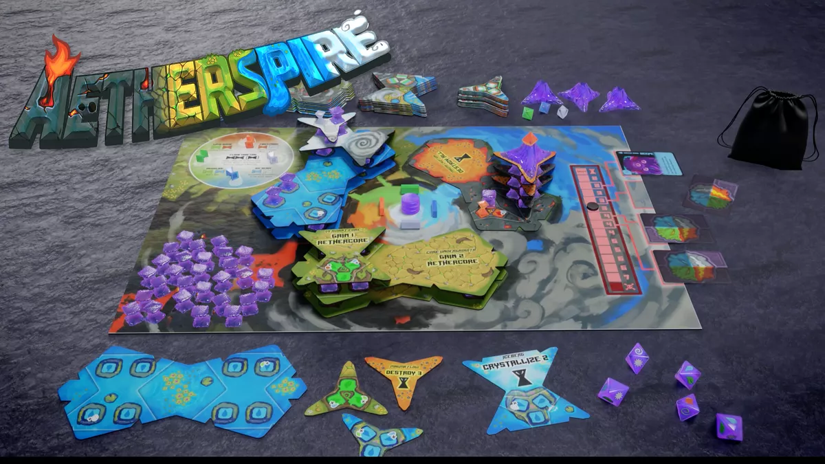 Aetherspire è un gioco cooperativo di piazzamento tessere 3D e tower defense per 1-4 giocatori.