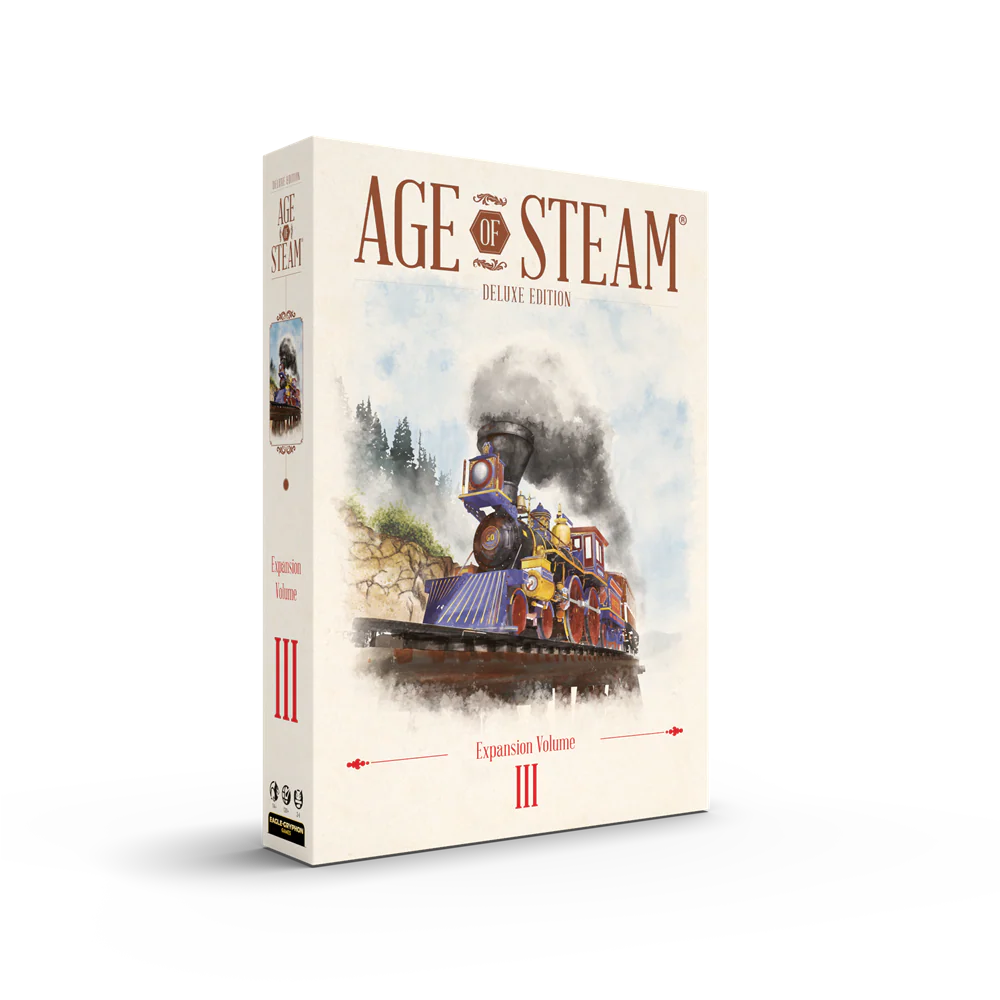 Age Of Steam Deluxe: Expansion Volume 3 di Eagle-Gryphon Games fa parte dei giochi da tavolo della categoria giochi gestionali. Creato da Martin Wallace, illustrato da Ian O’Toole e in vendita nel nostro sito e-commerce in Inglese , giocabile in 1-6 giocatori. La durata di una partita è di circa 120 minuti. Adatto dai 13 anni.