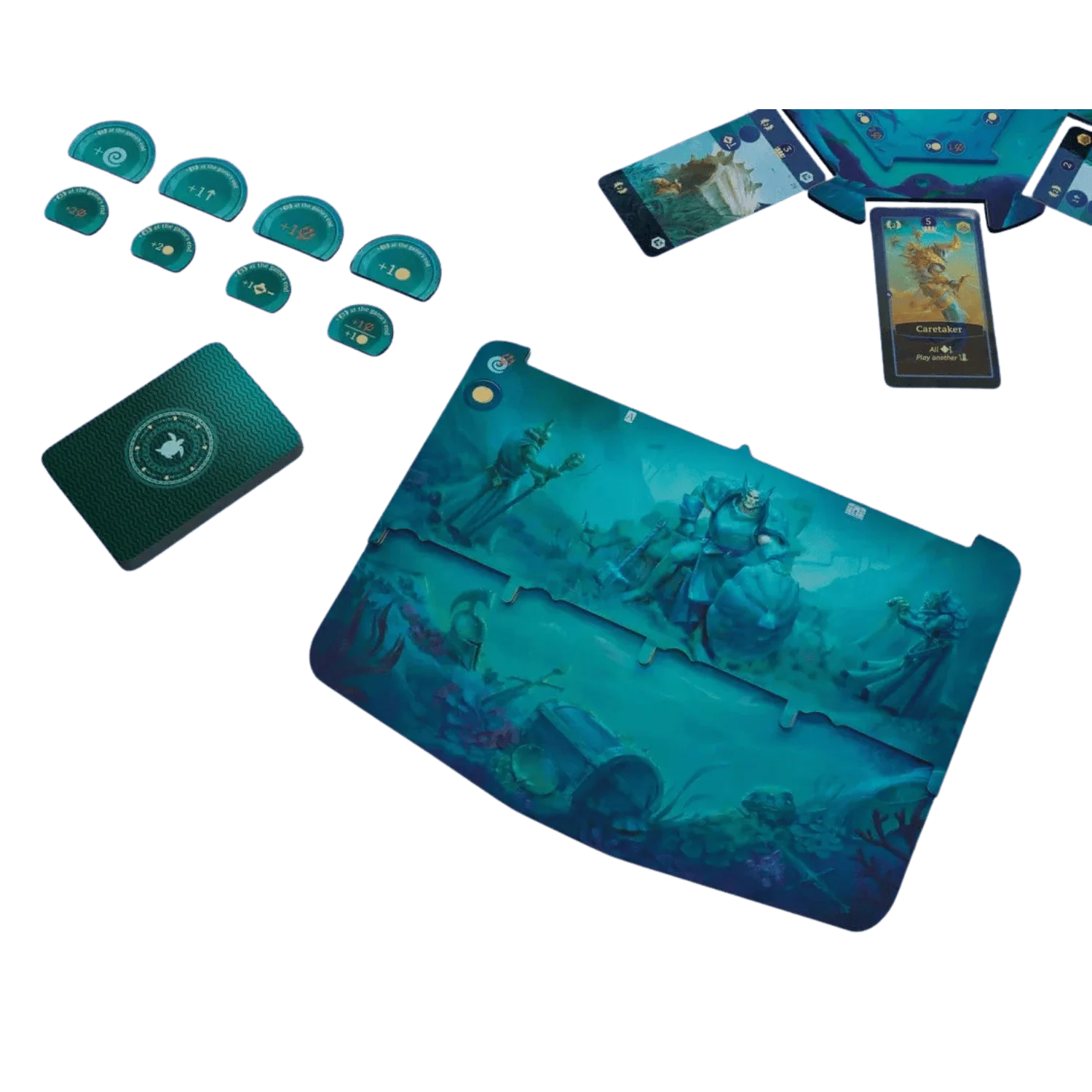 Scegli un Re Tartaruga o una Regina Calamaro e migliora il tuo regno sottomarino giocando carte azione e assemblando luoghi su plance a tre livelli. Dopo decenni di tempi turbolenti, è tempo di unire il mondo sottomarino sotto la pinna o il tentacolo di un unico sovrano!