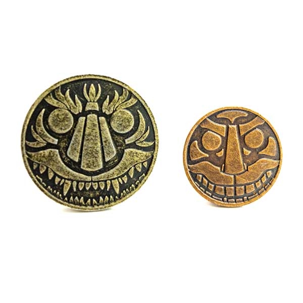 Rendi ancora più immersiva l’esperienza di Beast con questo upgrade deluxe: un elegante sacchetto in velluto contenente 18 monete in metallo, perfette per sostituire i segnalini moneta del gioco base.