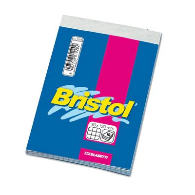 Blocco assemblato con punti metallici. Formato 8×12,70 fogli da 50 gr/mq. Carta bianca finisssima copertina in carta patinata e fondo rigido in cartoncino pesante. Perforazione extra precisa per uno strappo perfetto.