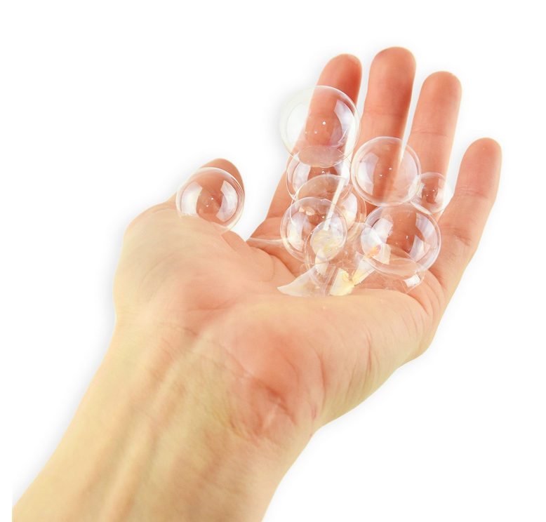 un grande “must” per chi lavora con persone con mobilità ridotta (queste bolle si muovono più lentamente di quelle normali), ma anche in molti altri ambiti come nidi, scuole dell’infanzia e persino case anziani: le bolle che non scoppiano vanno soffiate verso l’alto… dopo un paio di secondi sono sufficientemente asciutte e possono essere impilate sulle dita!
