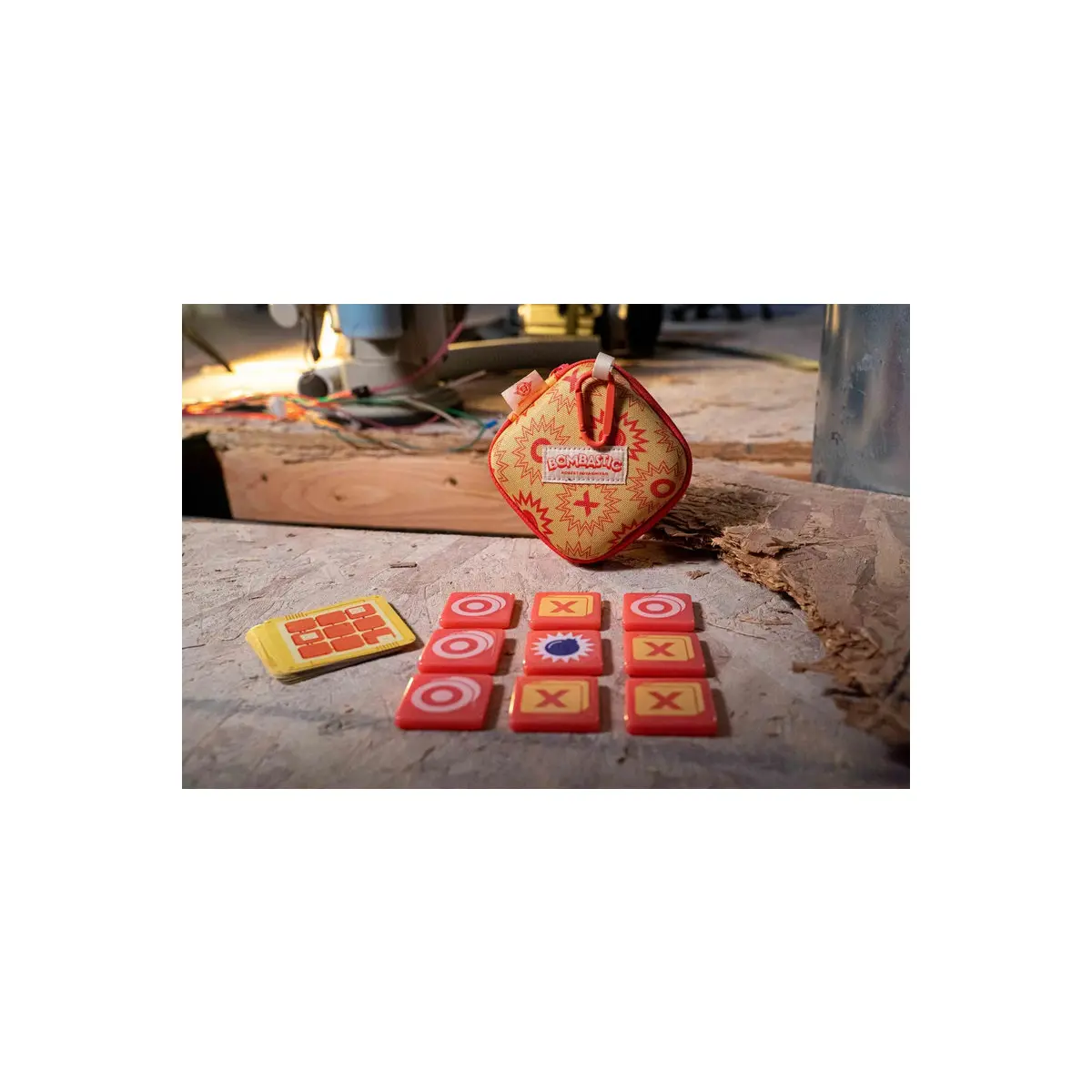 Bombastic è un gioco piccante, di cinque minuti, adatto ai viaggi, per due giocatori. Un giocatore è X e l’altro O: finora abbastanza standard. Ma ciò che non sai può farti male. Nove grosse tessere vengono mescolate a faccia in giù in una griglia 3×3: 4 X, 4 O e l’ultima? Una bomba delicata e ticchettante. Riuscirai a trovare le tue tessere senza esplodere?
