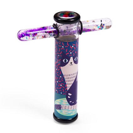 Il caleidoscopio con bacchetta da ruotare, è un gioco d’infanzia che ci collega al passato, oggi con una veste tutta nuova perché le sue figure e le stelline nella bacchetta twister sono fosforescenti, così da vedersi anche al buio! Le bacchette sono anche vendute separatamente per cambiare colore alla visione del caleidoscopio. Dai 5 anni