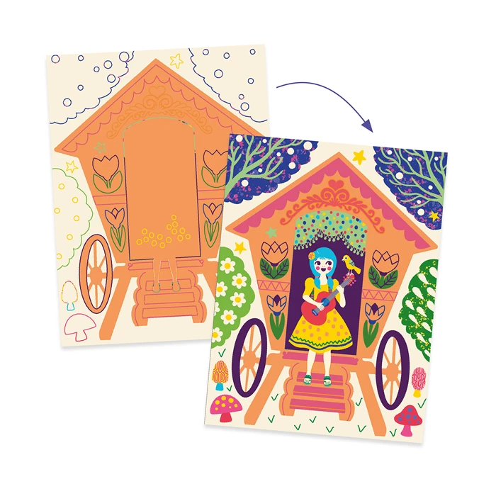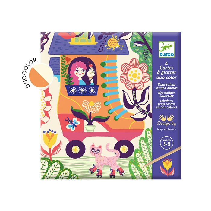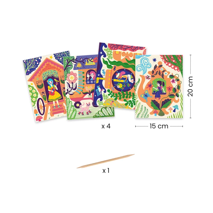 Contiene 4 fogli a tema “case matte” utilizzabili una sola volta e uno stecchino in legno per grattare lo strato superficiale.