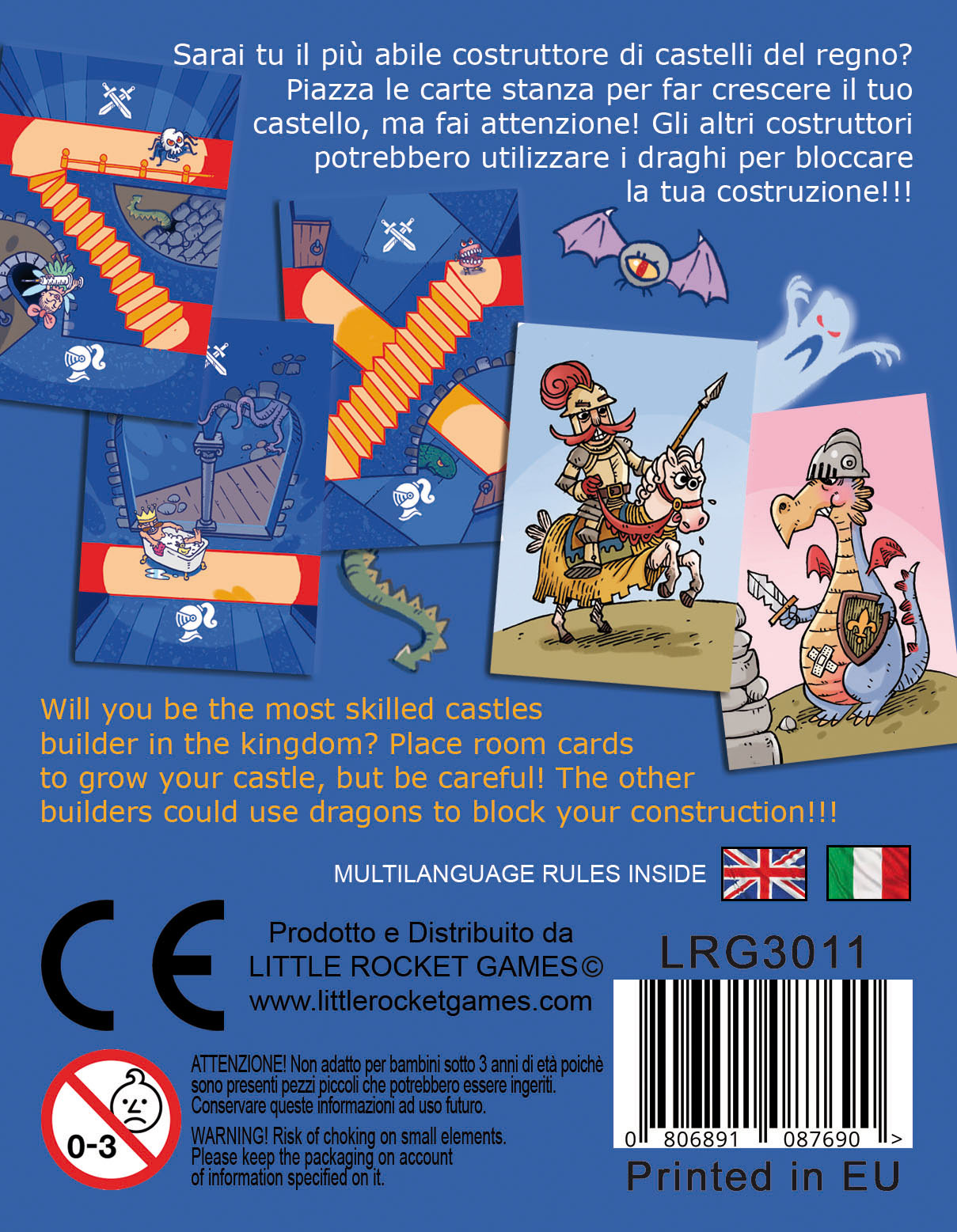 Piazza le carte Stanza per far crescere il tuo Castello, ma fai attenzione! Gli altri costruttori potrebbero utilizzare i Draghi per bloccare la tua opera!!!