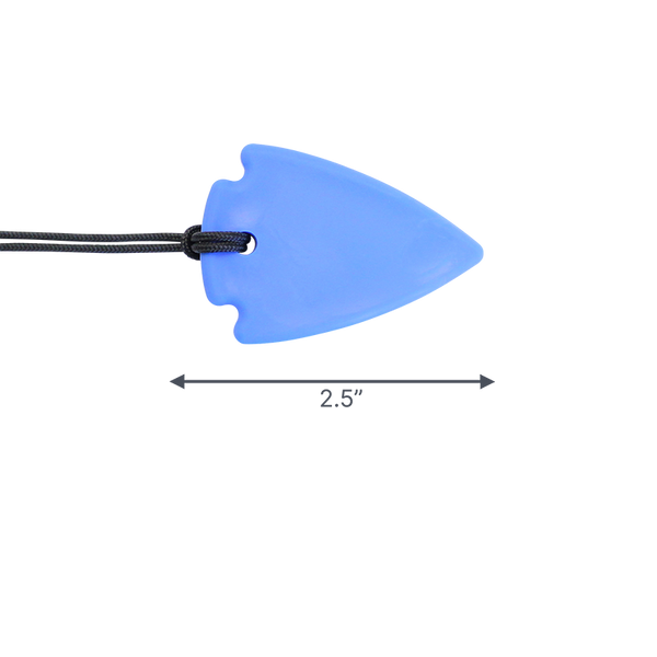 Ciondolo a forma di freccia masticabile, del noto marchio americano Ark’s Therapeutic, discreto e dal design giovanile. Colore azzurro, comprende laccio con chiusura di sicurezza che si apre se tirata. Adatto anche a bambini e ragazzi. Durezza XXT dura, la più resistente. Privo di ftalati, PVC, BPA