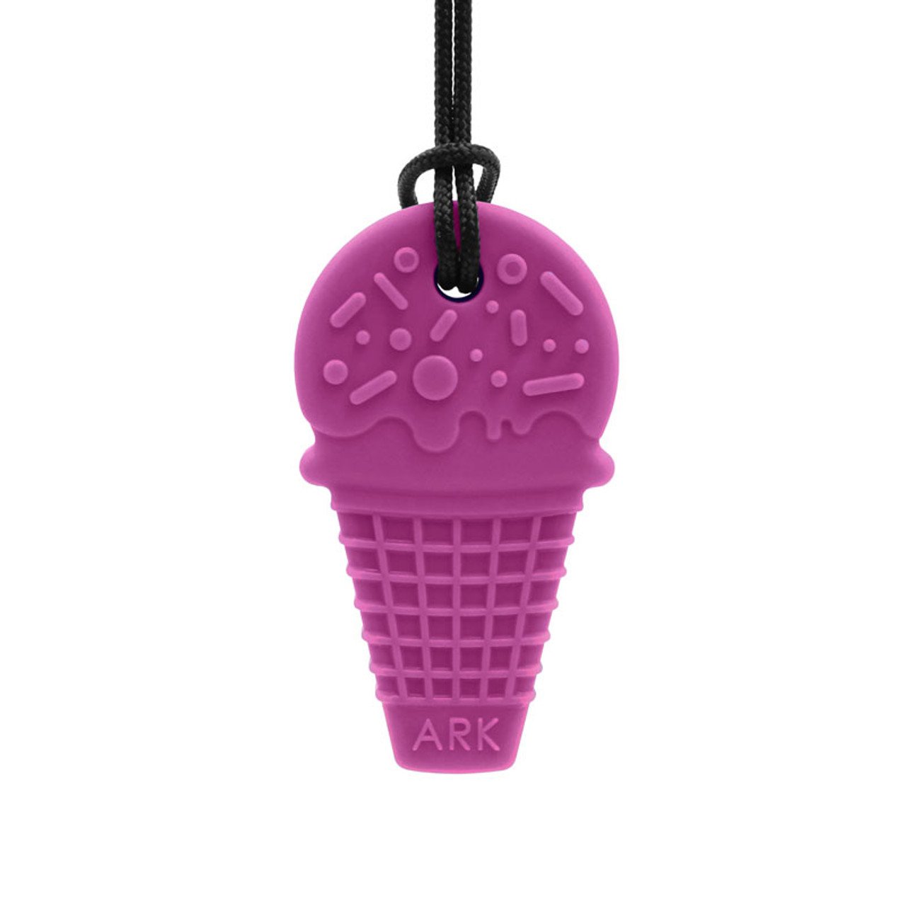 Ciondolo masticabile a forma di GELATO del noto marchio americano Ark’s Therapeutic, discreto e dal design giovanile.