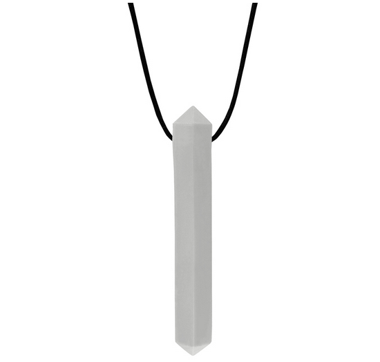 Ciondolo masticabile del noto marchio americano Ark Therapeutic, discreto e dal design giovanile. Colore grigio chiaro, comprende laccio con chiusura di sicurezza che si apre se tirata. Adatto anche a bambini e ragazzi. Consistenza: SOFT