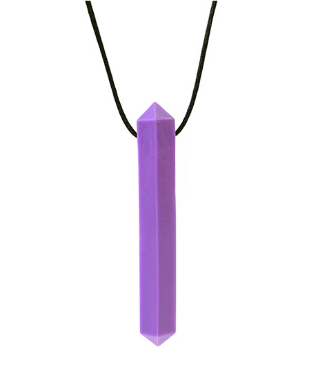 Ciondolo masticabile del noto marchio americano Ark Therapeutic, discreto e dal design giovanile. Colore Viola lavanda, comprende laccio con chiusura di sicurezza che si apre se tirata. Adatto anche a bambini e ragazzi. Consistenza: XXT (il più duro)
