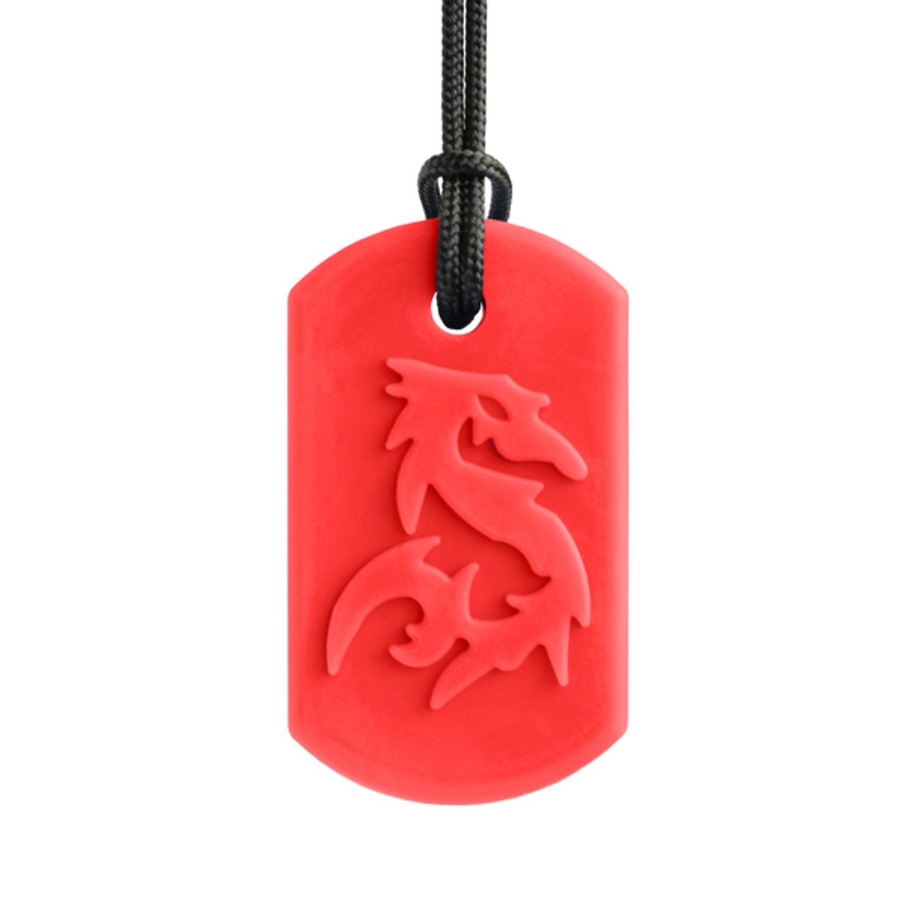 La medaglietta con in rilievo un drago rosso (1 pezzo) duretta standard/soft, è un ciondolo utile per scaricare l’ansia in chi prova la necessità di portare oggetti alla bocca.