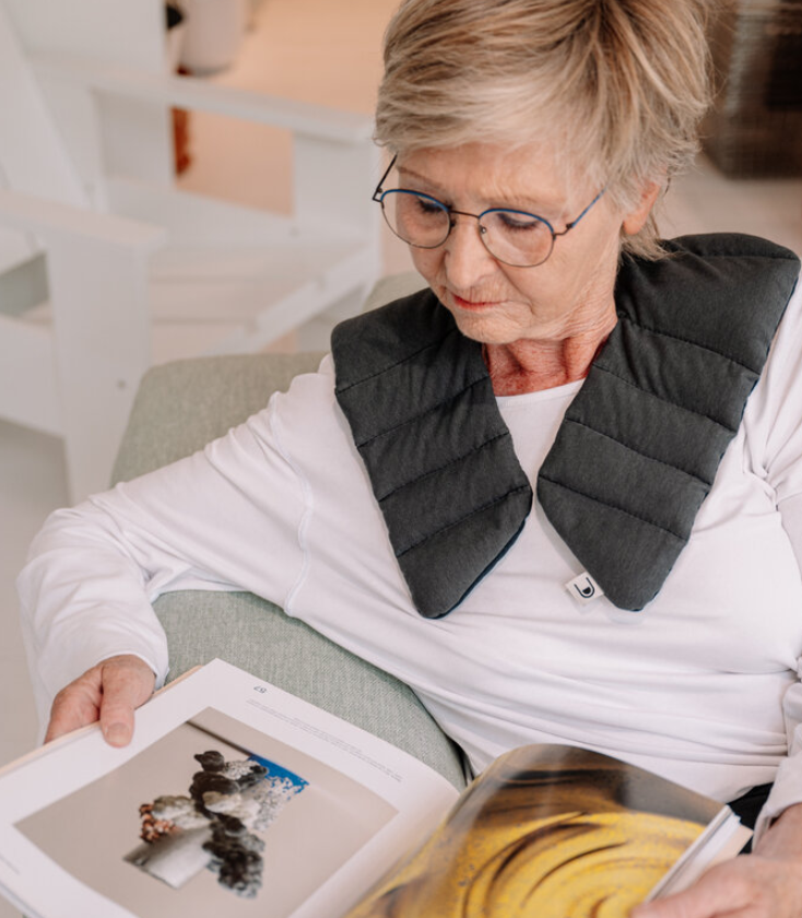 Collo in stoffa, ponderato, per adulti e bambini del peso di 1.7kg Questo prodotto è REALIZZATO A MANO IN BELGIO. Reversibile in colore blu/grigio, il collo è realizzato con prodotti di qualità: %47 cotone organico, %47 viscosa, %6 elastane con filling di piccole biglie in vetro smussato (vetro riciclato). Il tessuto è morbidissimo e selezionato […]