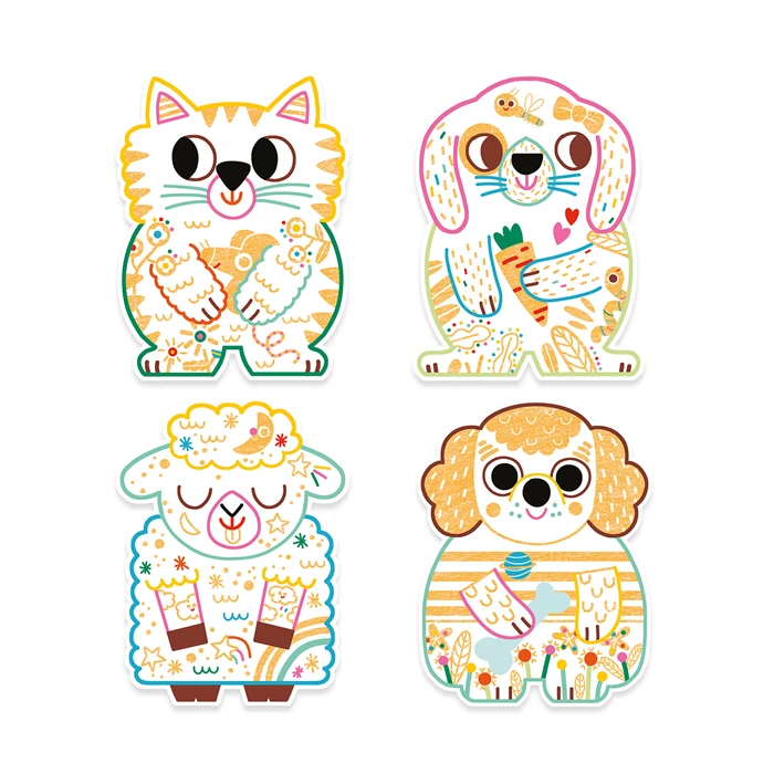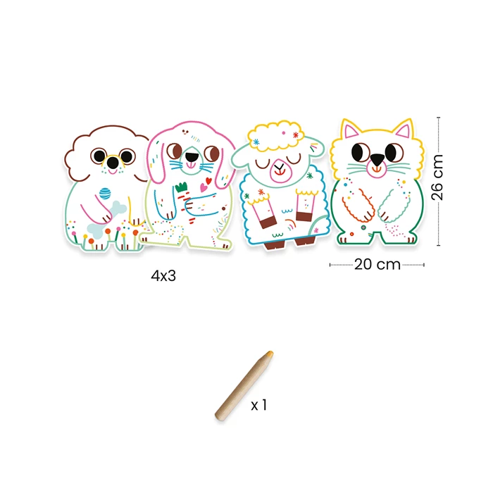 Ecco un modo per avvicinarsi al disegno con un’attività magica: passa il grande pastello compreso nel set sulle figure degli animali e osserva come alcune aree si svelano, completandosi. Che ne dici ora di appendere gli animali nella tua cameretta?