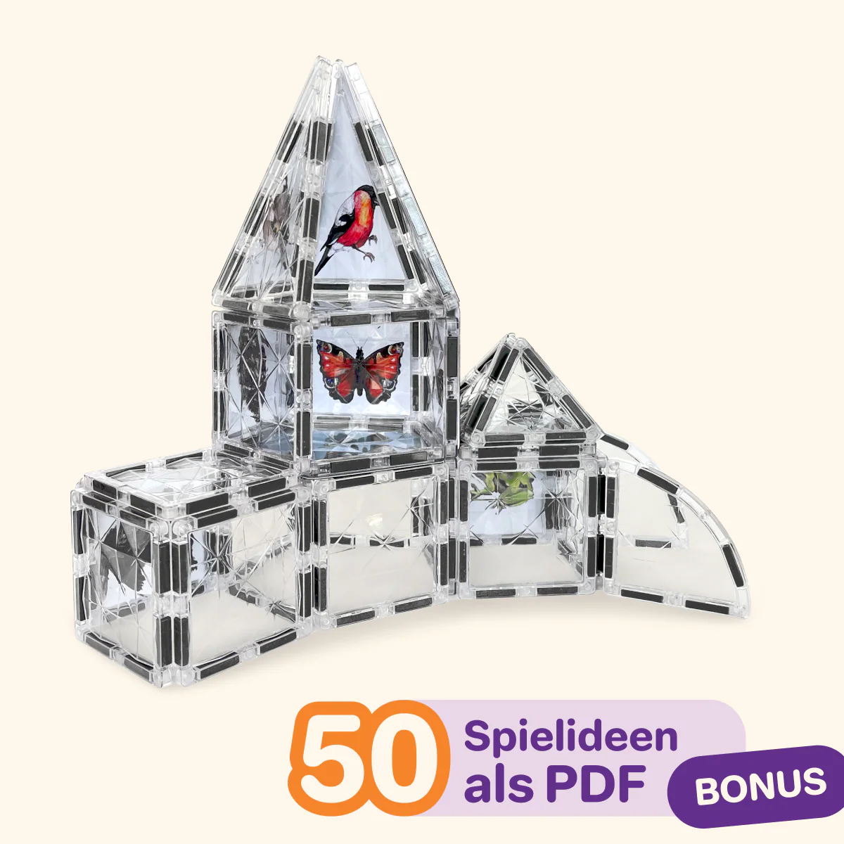 Conosciamo tutti i blocchi magnetici COLORMAG, ma ora stiamo facendo un ulteriore passo avanti con COLORMAG CLEAR. Questo eccezionale set di costruzioni apre ai bambini le porte di un mondo di creatività senza limiti. Grazie alle schede didattiche incluse, i bambini non solo si divertiranno all’infinito, ma acquisiranno anche preziose conoscenze sulla natura.