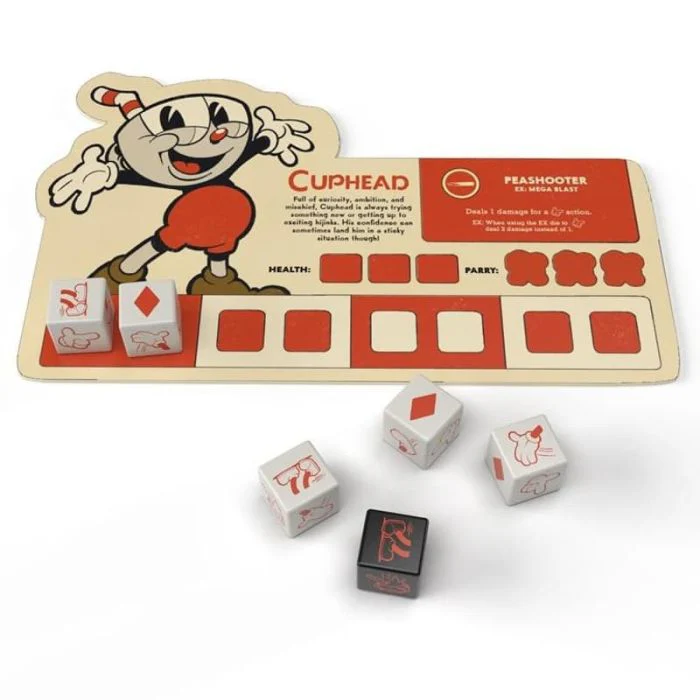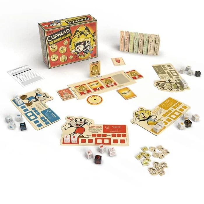 Dal famoso videogioco Cuphead, arriva un nuovo gioco di dadi cooperativo, originale e rapido, nel quale i giocatori devono tirare i dadi per sconfiggere i boss. Caratterizzato dal classico stile artistico disegnato a mano degli anni ’30, questo gioco di carte e dadi emula l’eccitazione del videogioco a scorrimento laterale e corsa con armi da fuoco.
