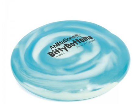 Cuscino rotondo, in gomma, ripieno di sferette libere al suo interno. BittyBottoms è un prodotto pensato per quei bambini che hanno difficoltà a rimanere seduti a tavola o in classe, che sono sempre in movimento e necessitano di un po’ di aiuto! Il cuscino è ripieno di sfere in pvc che si spostano e muovono.