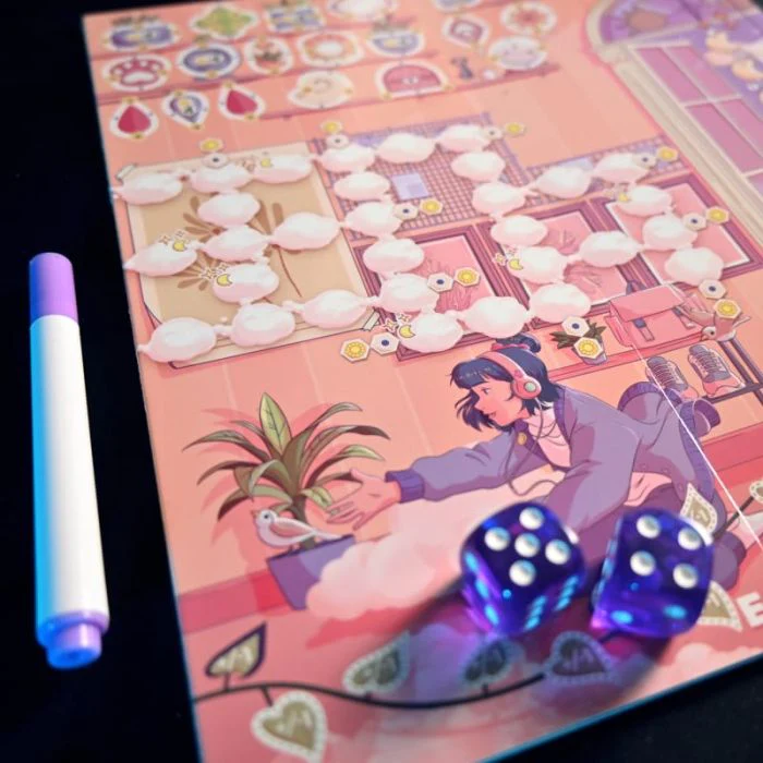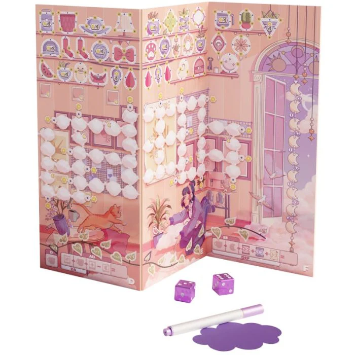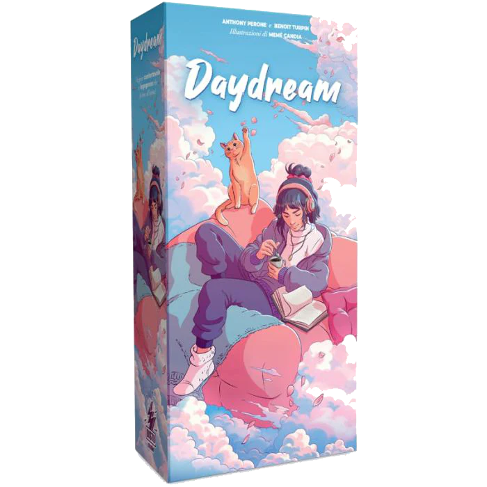Daydream è un gioco confortevole e ingegnoso che fa bene all’anima! Daydream è un gioco competitivo roll&write, molto “tranquillo” e senza alcuna interazione diretta tra i giocatori, con una grafica rasserenante e rilassante. Tirate i dadi e riempite in contemporanea le vostre griglie di nuvolette con i numeri usciti. Ogni riga deve contenere solo numeri unici , senza ripetizioni: se una riga o una colonna presenta numeri duplicati, quella riga o colonna non varrà nulla . Per ogni riga completata, in base a quanto sarete stati precisi e performanti nell’inserimento dei numeri, riuscirete a “disegnare” alcuni oggetti più o meno velocemente. A fine partita, chi è riuscito a disegnare più oggetti vince!