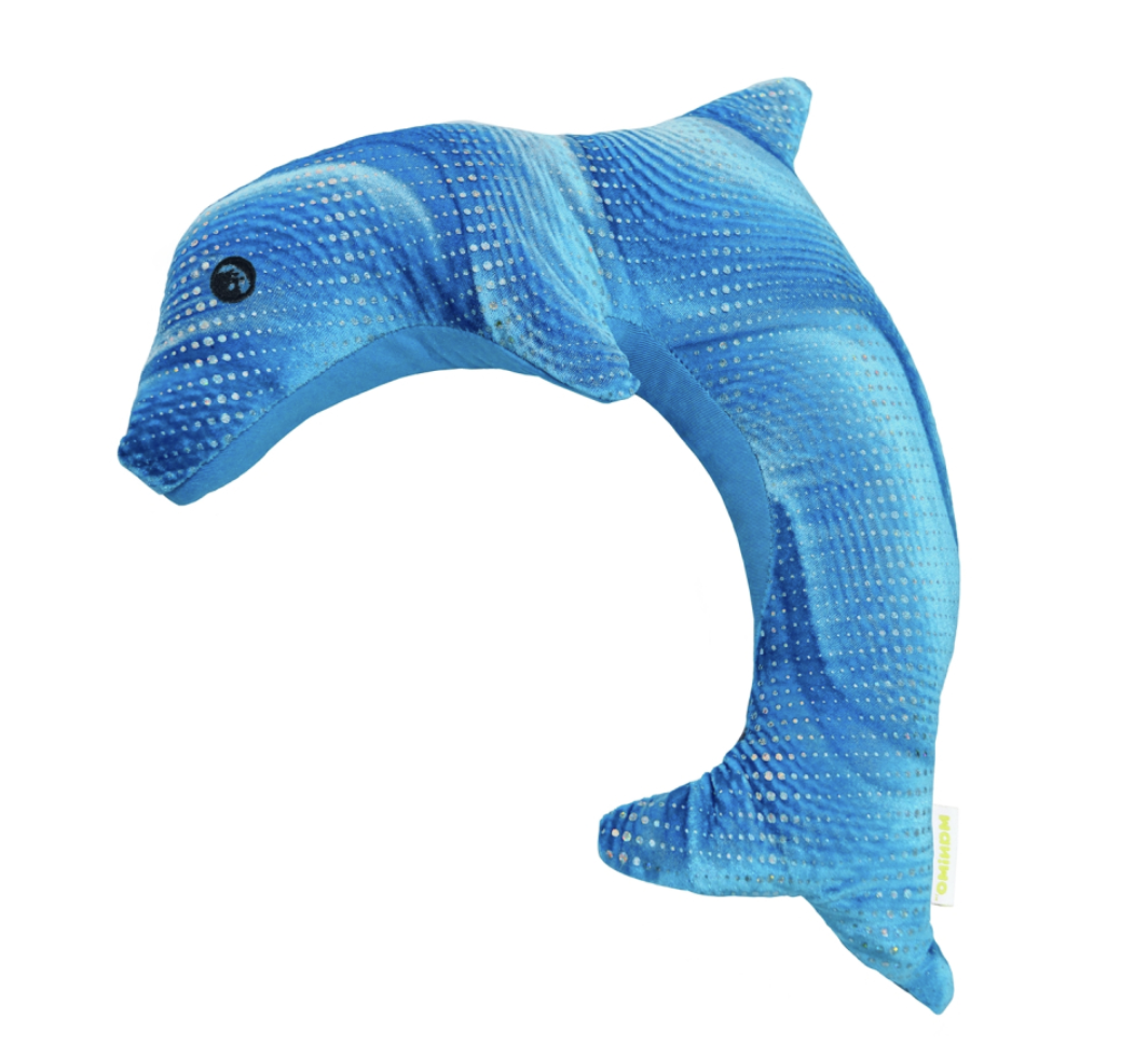 i prodotti ponderati di Manimo® si distinguono per cura e qualità. Il delfino, grazie alla sua forma ad “U”, si posiziona con facilità sulle spalle, ma può anche essere tenuto sulle gambe o sulla pancia. In tessuto sintetico, ripieno di granulato di plastica. Lavabile a mano. Peso: 1kg