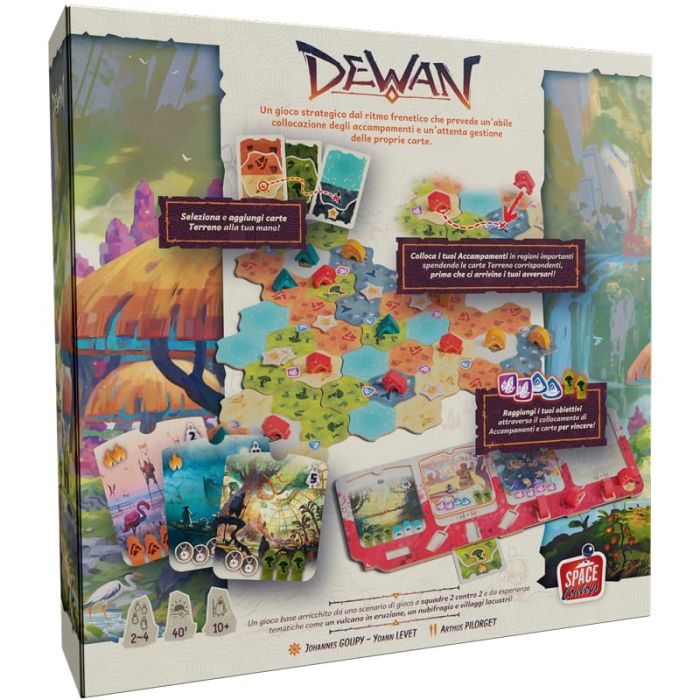 In Dewan inizia un nuovo giorno, ma le risorse stanno finendo. È tempo di levare le tende ed esplorare territori sconosciuti per garantire la sopravvivenza della propria tribù. Dewan è un gioco strategico e competitivo dal ritmo serrato, in cui ogni scelta conta e ogni errore può favorire gli avversari.