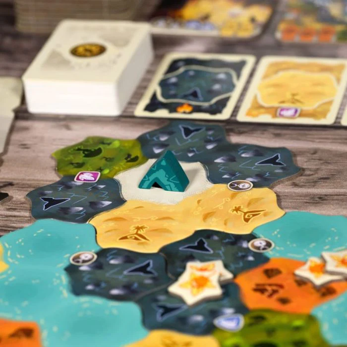 In Dewan dovrete selezionare e aggiungere carte Terreno alla vostra mano, decidendo se avanzare sulla mappa o potenziare le vostre possibilità future. Gli Accampamenti vanno collocati con attenzione, spendendo le carte corrette per soddisfare i requisiti delle tessere Storia, prima che qualcun altro vi preceda.