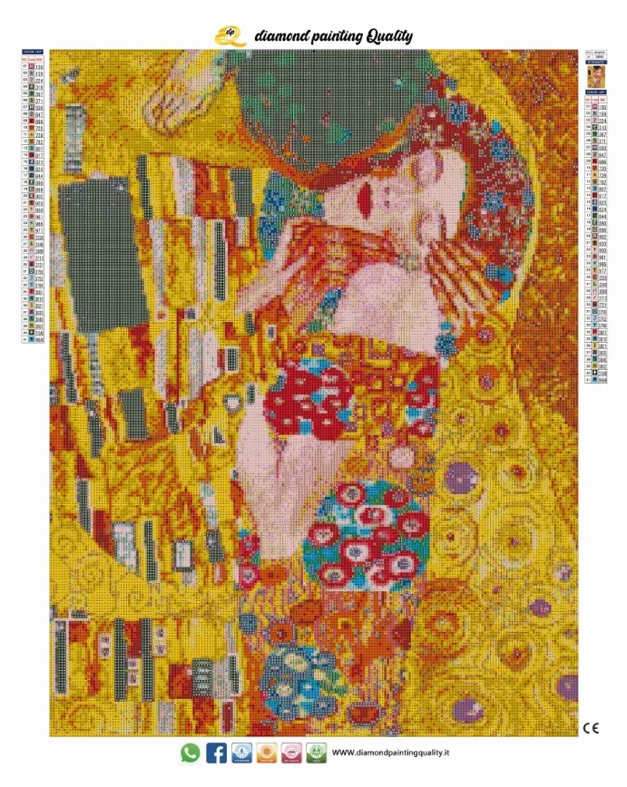 Il nostro diamond painting Bacio Klimt, è una tela full-square AB; completamente da ricoprire con diamanti a sezione quadrata con l’aggiunta degli Aurora Borealis iridescenti.