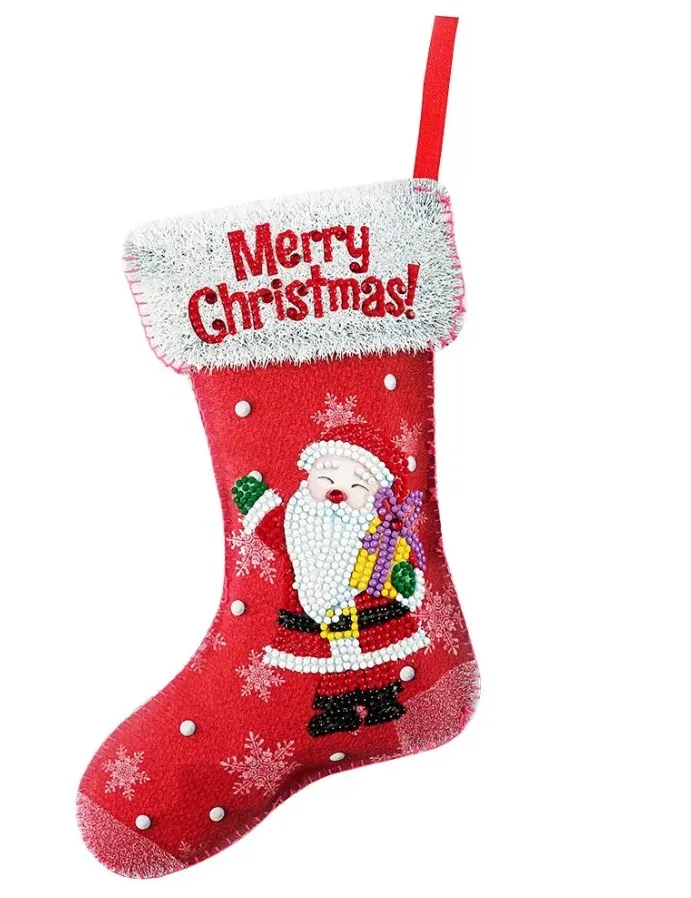 Il nostro diamond painting calza rossa, è una tela in cotone special crystal da realizzare fronte e retro con la tecnica del diamond painting.