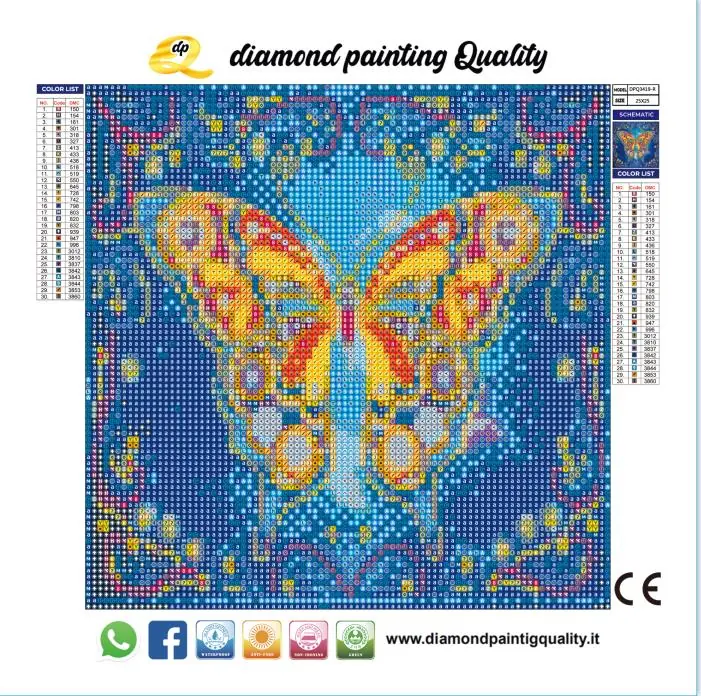 Il nostro diamond painting Farfalla Fantasy, è una tela full-round; completamente ricoperta di diamanti a sezione rotonda.