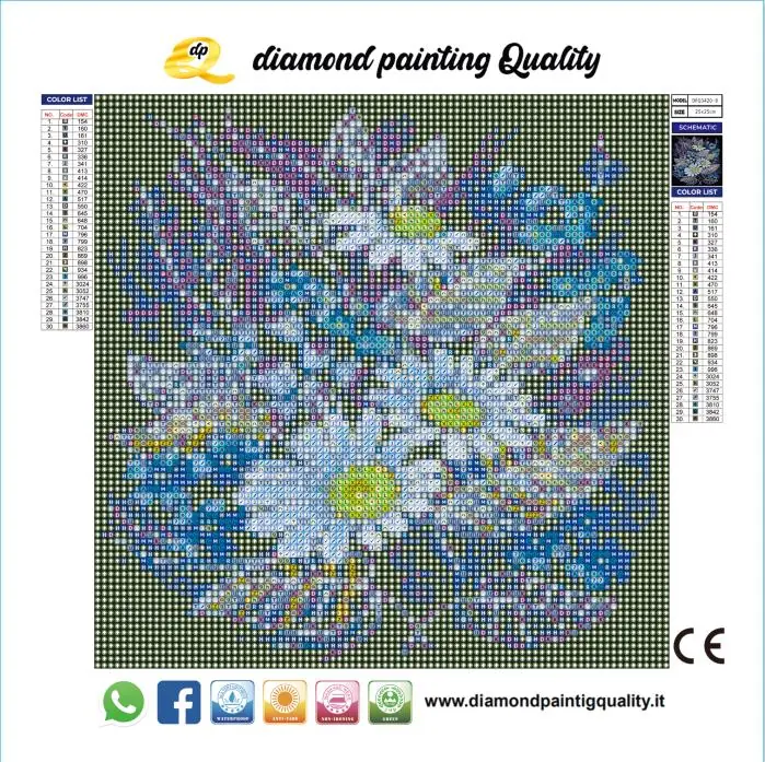 Il nostro diamond painting Fiori Fantasy, è una tela full-round; completamente ricoperta di diamanti a sezione rotonda.