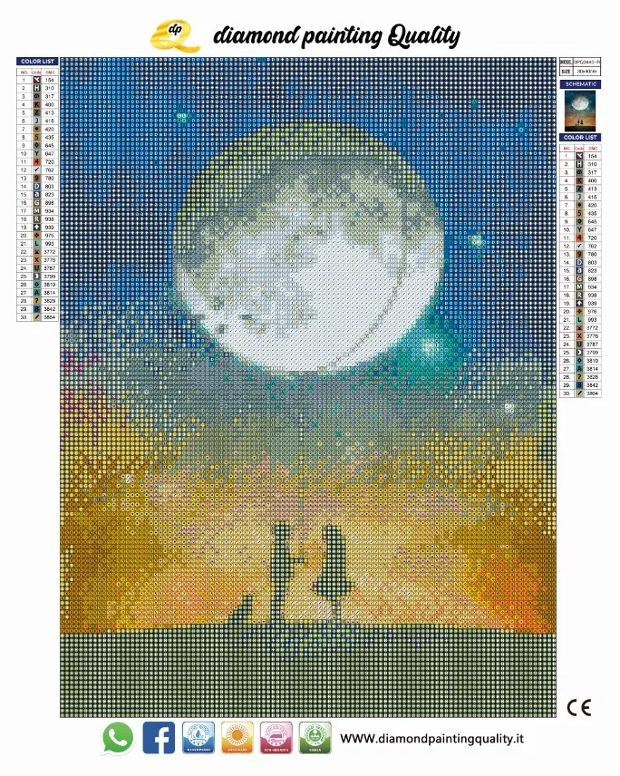 Il nostro diamond painting Honey Moon, è una tela full-round; completamente ricoperta di diamanti a sezione rotonda.