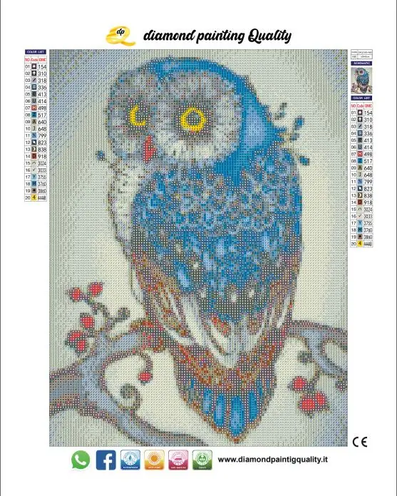 Il nostro diamond painting Il Gufo, è una tela full-square AB; completamente ricoperta di diamanti a sezione quadrata con l’aggiunta di Aurora Borealis iridescenti.