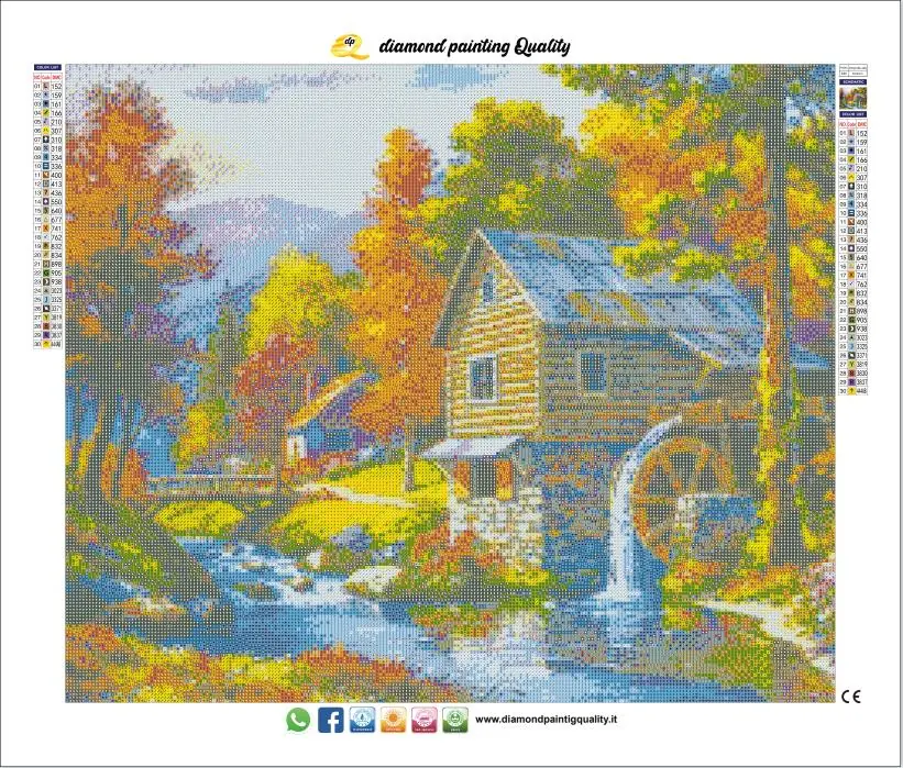 Il nostro diamond painting Il mulino, è una tela full-square AB; completamente ricoperta di diamanti a sezione quadrata con l’aggiunta di Aurora Borealis iridescenti.