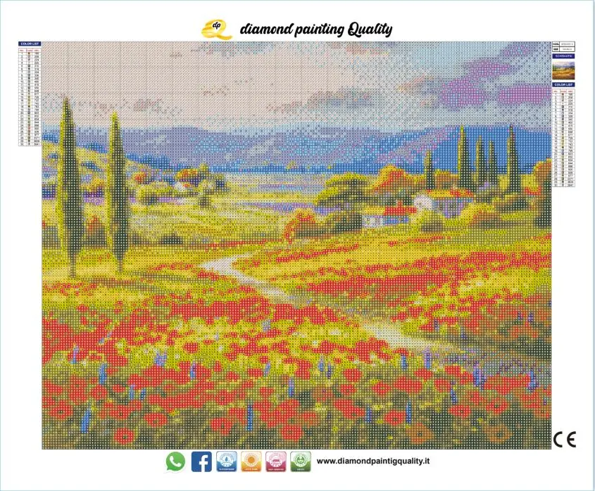 Il nostro diamond painting Paesaggio Estivo, è una tela full-square; completamente da ricoprire con diamanti a sezione quadrata.