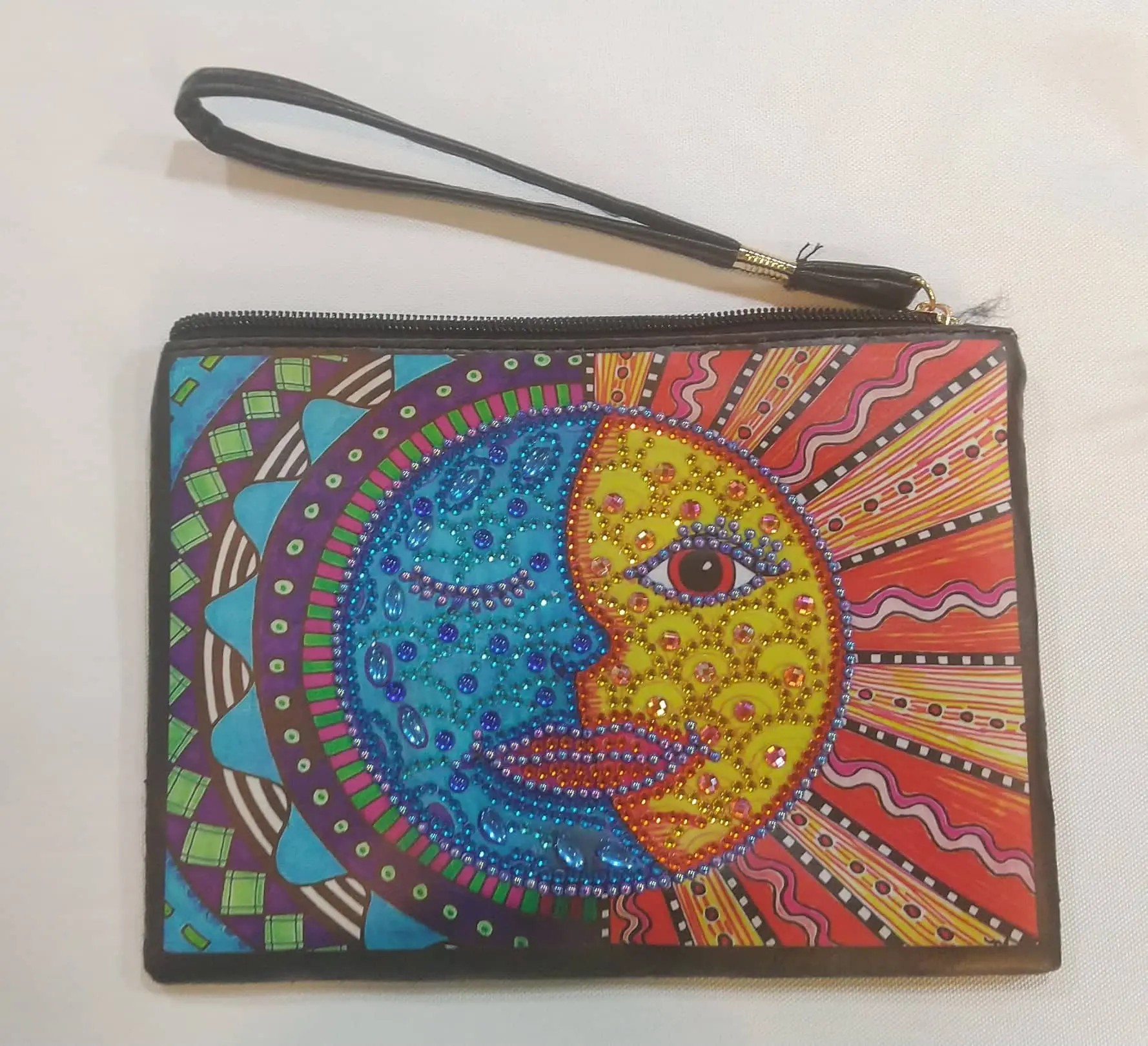La nostra Diamond Painting pochette sole e luna, è da completare con diamanti special/crystal per la realizzazione di un accessorio dal risultato del tutto originale.