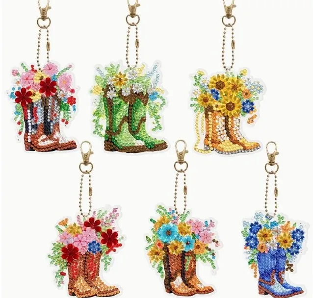 Il nostro diamond painting Portachiavi Stivali è composto da un set di 6 portachiavi di differenti forme e di varie colorazioni.