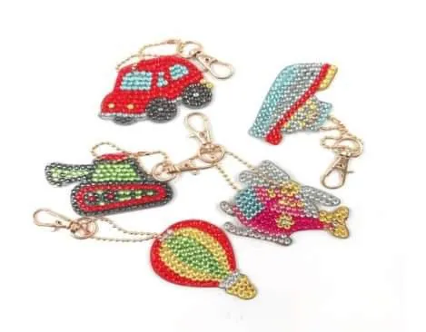 Il nostro diamond painting Portachiavi Veicoli è composto da un set di 5 portachiavi, a forma di veicoli di varie colorazioni, che viene fornito completo di kit di lavoro per la realizzazione.