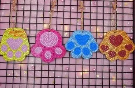 Diamond painting Portachiavi Zampine. Il nostro diamond painting Portachiavi Zampine è composto da un set di 4 portachiavi, a forma di zampine e di varie colorazioni, che viene fornito completo di kit di lavoro per la realizzazione. Diamond Painting Portachiavi Zampine Cod. DPQ-PC011