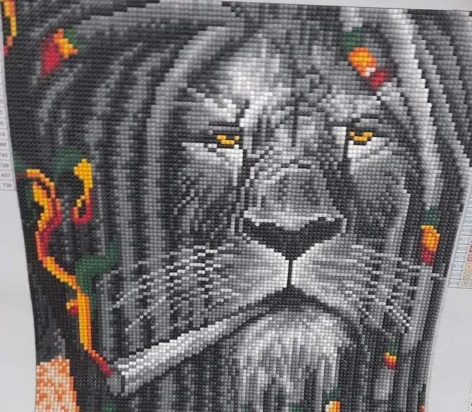 Il nostro diamond painting Rasta Lion, è una tela full-round; completamente ricoperta di diamanti a sezione rotonda.