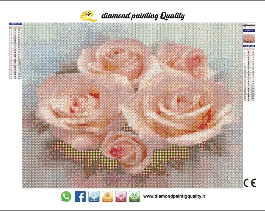 Il nostro diamond painting Rose Rosa, è una tela full-round; completamente ricoperta di diamanti a sezione rotonda.