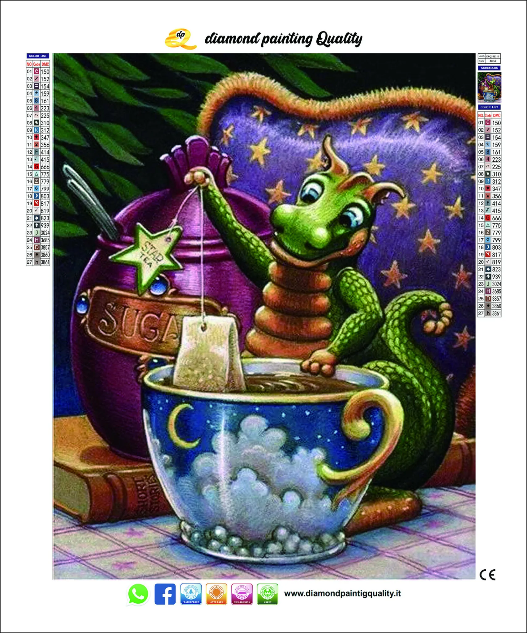 Diamond Painting Tea Time Il nostro diamond painting Tea Time, è una tela da completare con diamanti special/crystal per la realizzazione di un quadro dal risultato del tutto originale. Viene fornito completo di kit di lavoro per la realizzazione. Dimensione tela 40×50 cm. Diamond Painting Cod. DPQ-SC010
