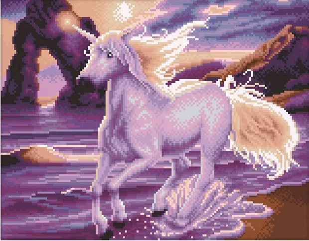 Diamond painting Unicorno. Il nostro diamond painting Unicorno, è una tela full-round AB; completamente ricoperta di diamanti a sezione rotonda con l’aggiunta degli Aurora Borealis iridescenti. Diamond Painting Cod. DPQ12074-AB R45X35cm Dimensione immagine 45 x 35 cm. Dimensione tela 53 x 43 cm.