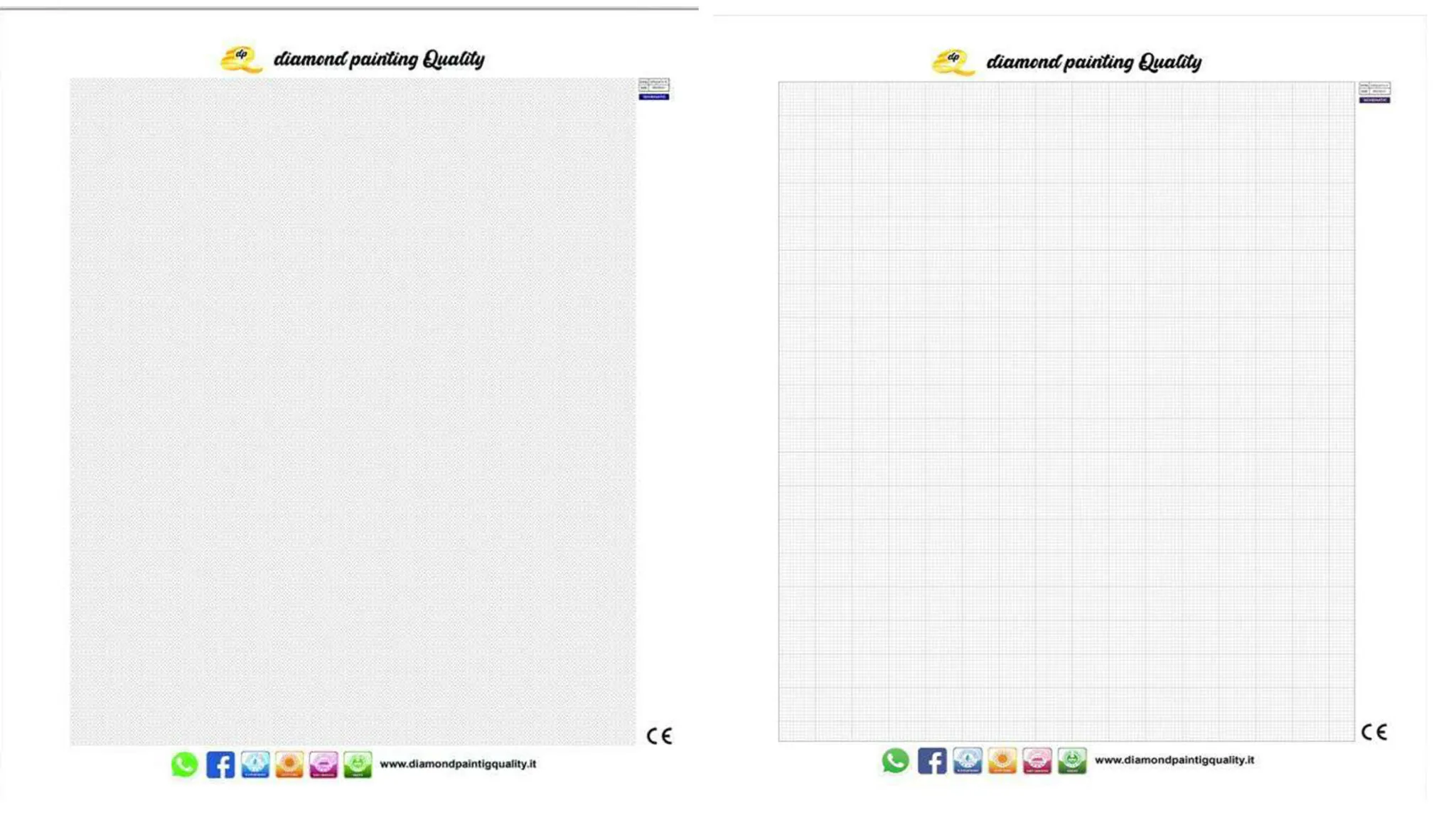 Il nostro diamond painting White Canvas, è una tela completamente bianca, senza simboli e senza colori, sulla quale è stampata la griglia per i diamanti quadrati, oppure i cerchietti per i diamanti tondi, resa adesiva tramite colla gel e protetta da una pellicola trasparente.
