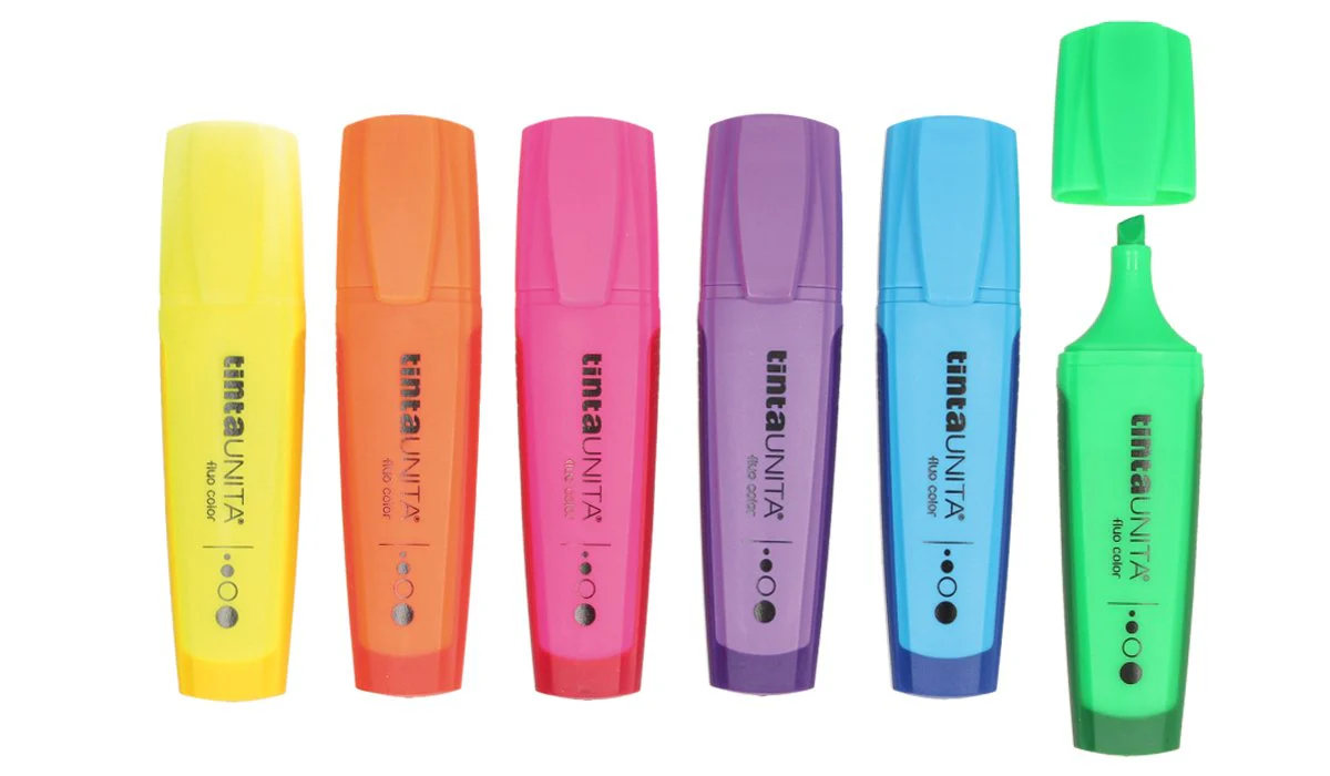 Evidenziatori con impugnatura Soft Touch per rendere la presa più sicura.Varianti colore: giallo, arancione, verde, azzurro, viola, fucsia.