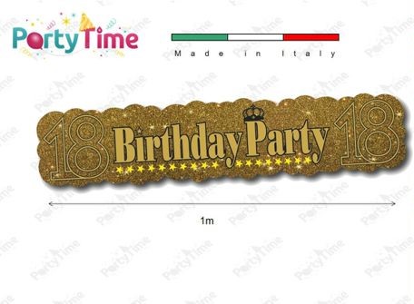 Festone in cartoncino per festa di compleanno 18 anni Con scritta ” 18 Birthday Party 18 ” Larghezza 1 metro Altezza 22 cm