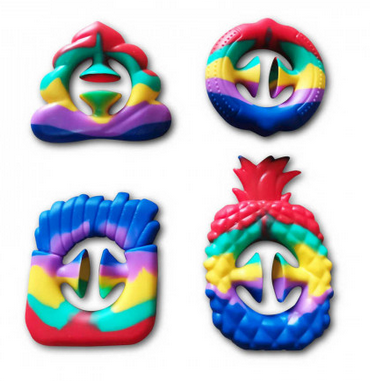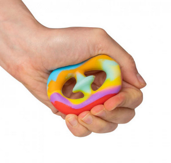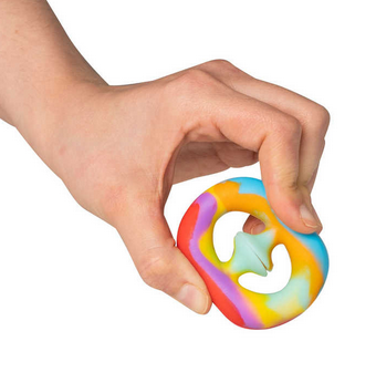 Fidget con ventose al centro: posizionalo nel palmo della mano e stringi. Il fidget farà un soddisfacente “pop” nel momento in cui le ventose si staccheranno. In diverse fantasie, multicolore. Dai 3 anni.
