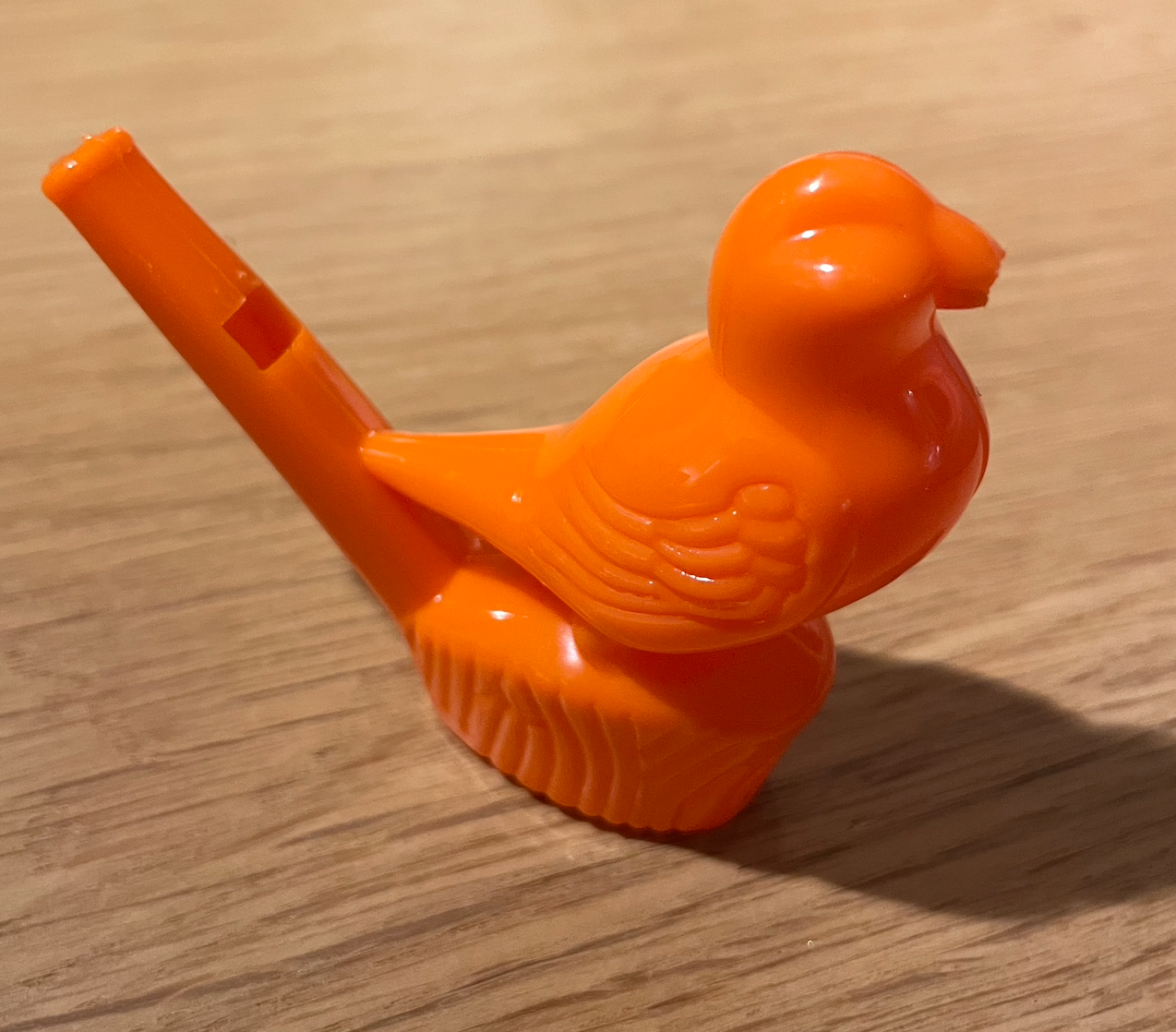 Piccolo fischietto in plastica, in colori assortiti, per riprodurre il verso degli uccellini: basta inserire un po’ d’acqua e soffiare per riprodurre in modo incredibilmente fedele il fischiettio dei passeri. Non adatto prima dei 3 anni