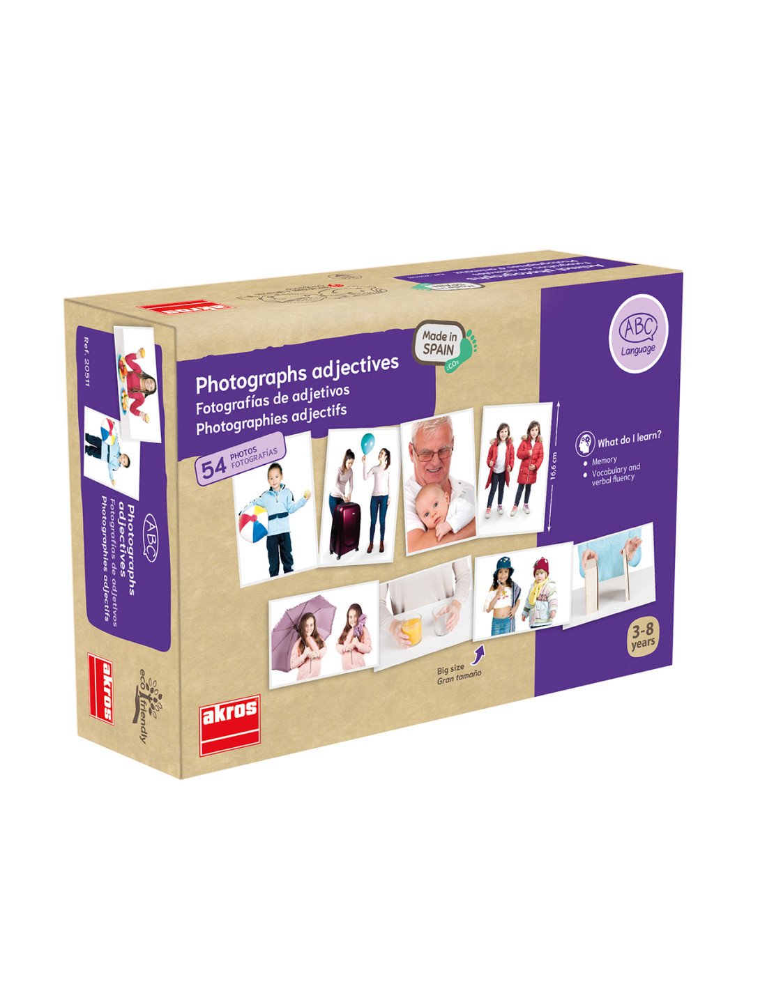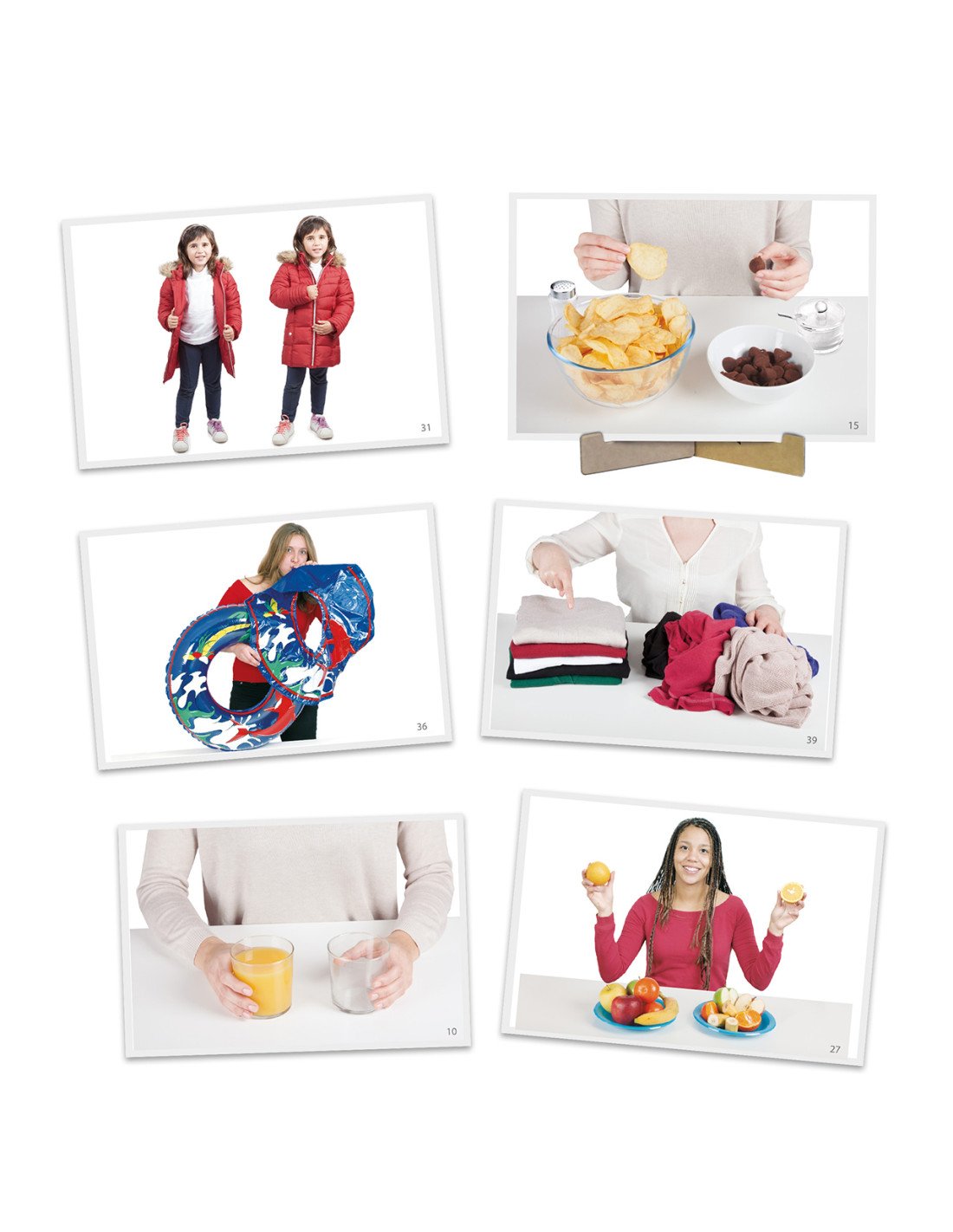 Immagini di grandi dimensioni progettate per lo sviluppo del linguaggio e l’acquisizione del vocabolario. 54 fotografie che rappresentano gli aggettivi di base.
