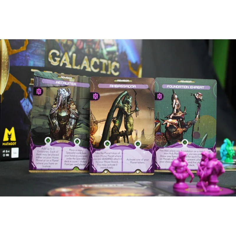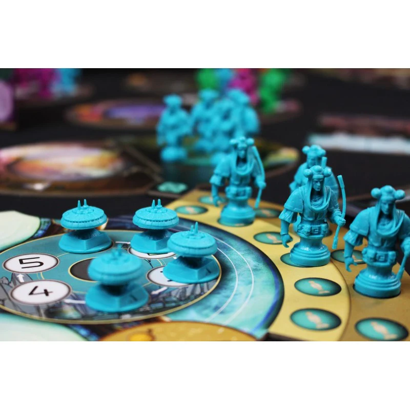 A ogni tour, i giocatori effettuano una serie di azioni giocando alle loro carte principali. Queste azioni includono l’invio di emissari verso nuovi pianeti, la costruzione di istituti per stabilire una presenza durevole e l’esplorazione di nuovi settori dello spazio.
